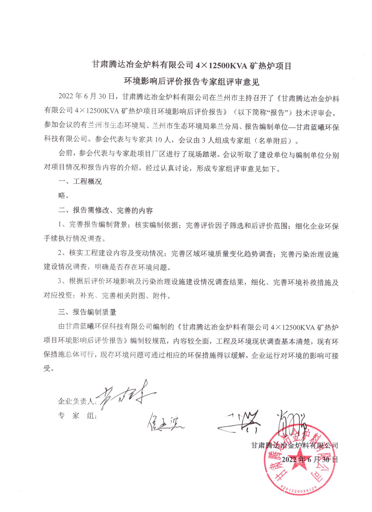 根據(jù)《建設(shè)項(xiàng)目環(huán)境影響后評價(jià)管理辦法(試行)》的有關(guān)要求,甘肅騰達(dá)冶金爐料有限公司委托甘肅藍(lán)曦環(huán)保科技有限公司編制完成了《甘肅騰達(dá)冶金爐料有限公司4×12500KVA礦熱爐項(xiàng)目環(huán)境影響后評價(jià)》并通過審查。